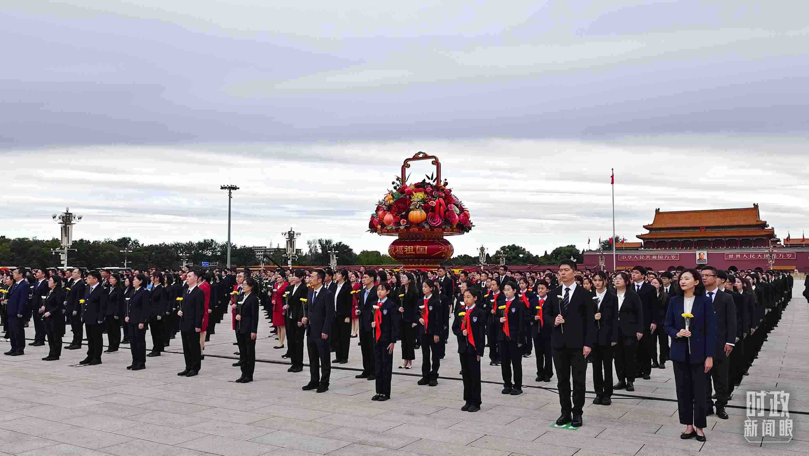 正逢新中國成立75周年,今年參加儀式的人數(shù)規(guī)模有所增加?!稌r政新聞眼》現(xiàn)場了解到,相較去年,人民英雄紀(jì)念碑基座上增加了4名禮兵。今年參加儀式的各界代表增至2400多名。