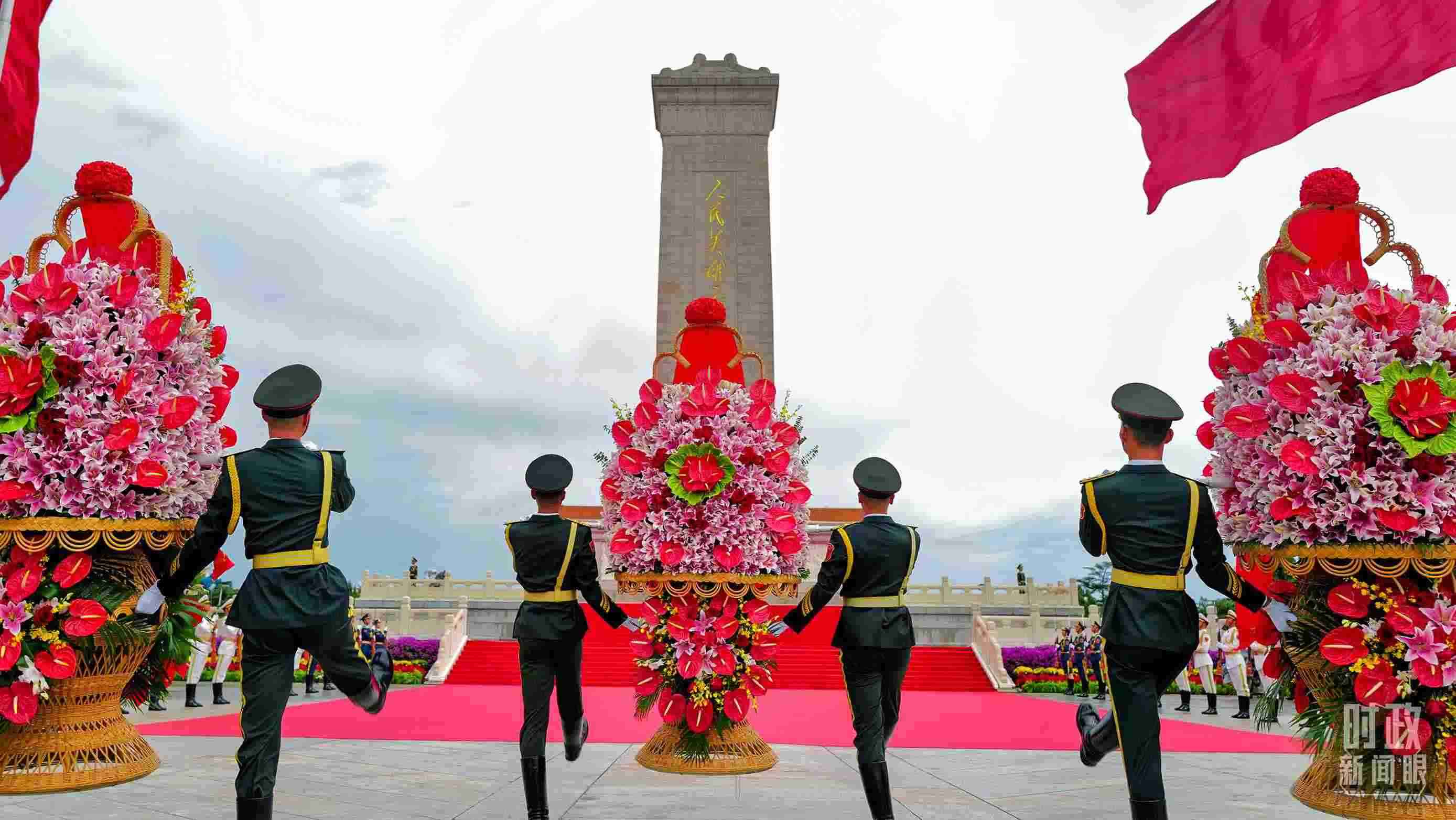 △烈士紀(jì)念日向人民英雄敬獻花籃儀式在天安門廣場舉行。(總臺央視記者陳揚、總臺記者李晉拍攝)