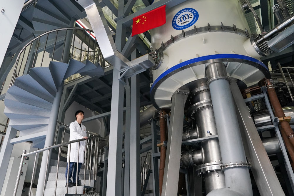 這是在中國科學(xué)院合肥物質(zhì)科學(xué)研究院強(qiáng)磁場科學(xué)中心拍攝的國家重大科技基礎(chǔ)設(shè)施“穩(wěn)態(tài)強(qiáng)磁場實驗裝置”混合磁體(2022年10月17日攝)。