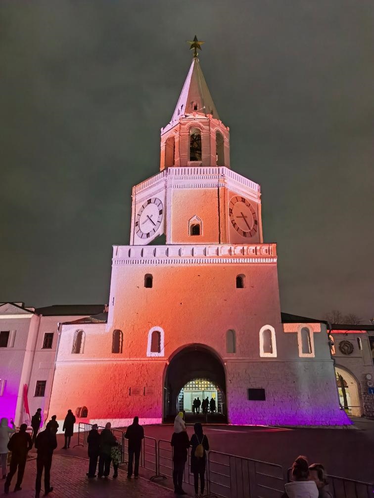 夜幕下的喀山,處處流光溢彩。一輛輛載著各國貴賓的車輛掠過克里姆林宮城墻“金磚燈光秀”,駛向自由廣場上的喀山市政廳。