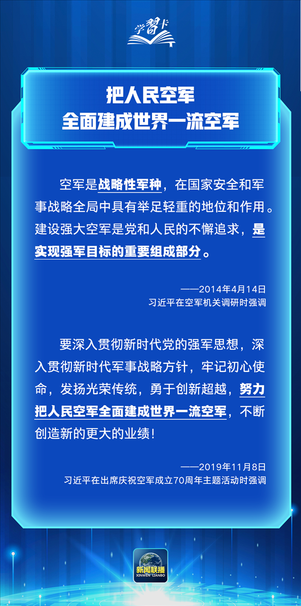 2024年11月11日,是中國人民解放軍空軍成立75周年紀念日。在黨的堅強領(lǐng)導(dǎo)下,一代代空軍官兵胸懷凌云壯志,搏擊萬里長空,推動空軍建設(shè)取得舉世矚目的成就,為維護國家主權(quán)、安全、發(fā)展利益建立了不朽功勛。如何把人民空軍全面建成世界一流空軍?一起學(xué)習(xí)↓