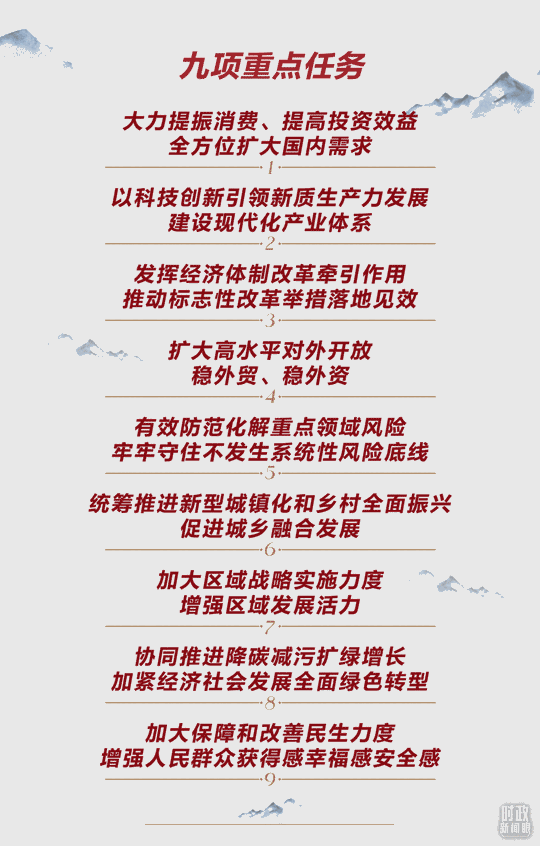 今年的中央經(jīng)濟(jì)工作會議確定,2025年要抓好9項重點任務(wù)。