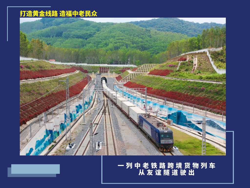2021年12月3日,中老鐵路全線開通運營。習近平總書記通過視頻連線出席中老鐵路通車儀式時指出,中老鐵路是兩國互利合作的旗艦項目。鐵路一通,昆明到萬象從此山不再高、路不再長。雙方要再接再厲、善作善成,把鐵路維護好、運營好,把沿線開發(fā)好、建設好,打造黃金線路,造福兩國民眾。