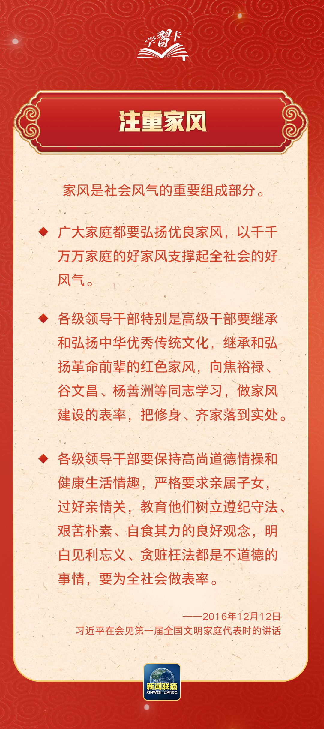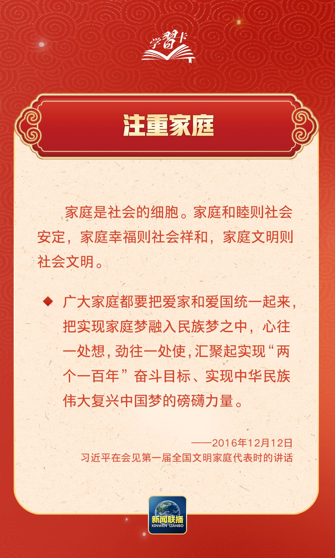 在習(xí)近平總書記心中,家國(guó)的分量很重。他多次強(qiáng)調(diào)要重視家庭建設(shè),提倡愛家愛國(guó)相統(tǒng)一,指出廣大家庭都要弘揚(yáng)優(yōu)良家風(fēng),以千千萬萬家庭的好家風(fēng)支撐起全社會(huì)的好風(fēng)氣。近日,《求是》雜志發(fā)表習(xí)近平總書記重要文章《注重家庭,注重家教,注重家風(fēng)》,一起學(xué)習(xí)↓