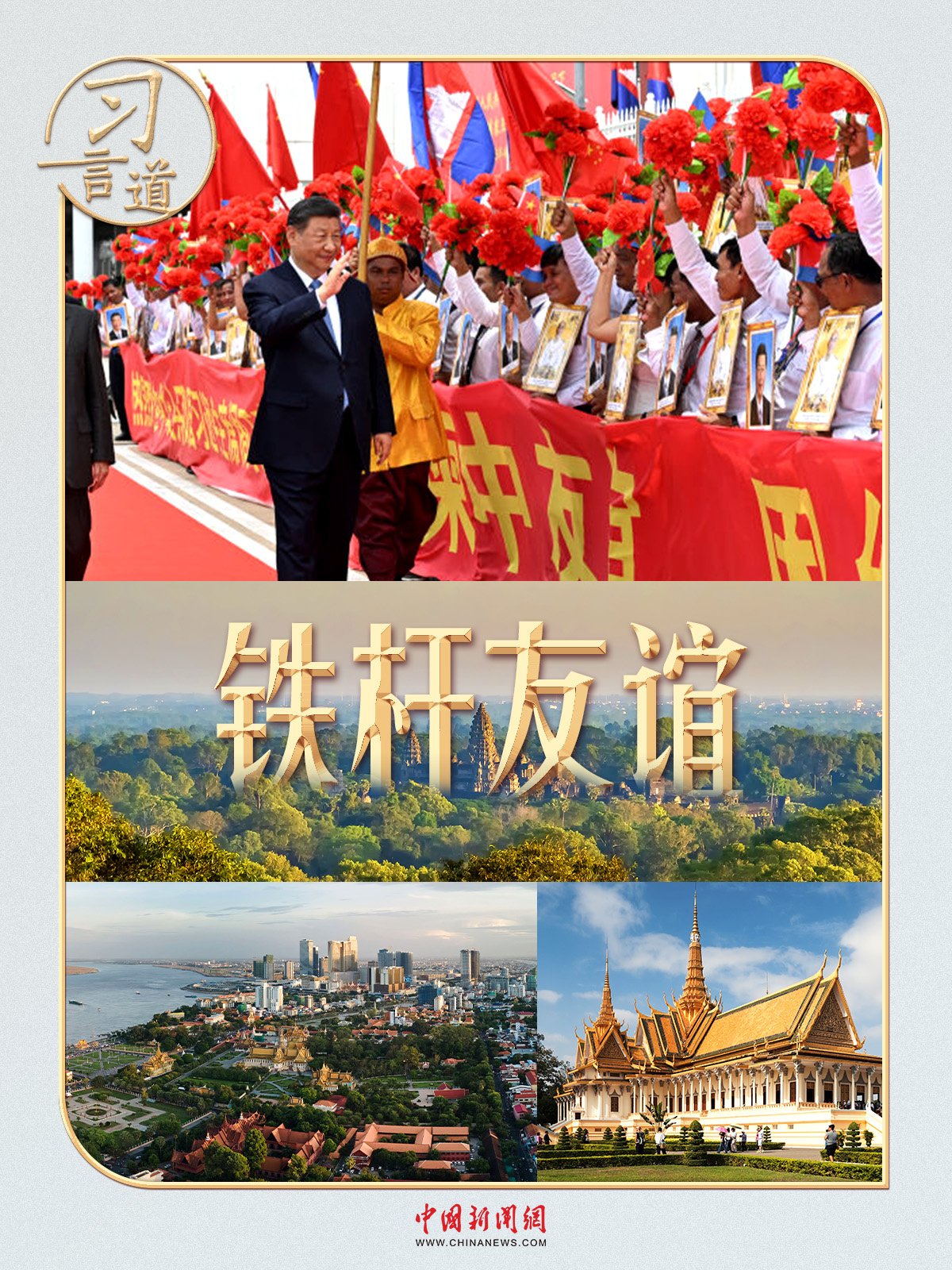 今次訪問柬埔寨,習(xí)近平主席表示,“我堅(jiān)信,在雙方共同努力下,歷經(jīng)歲月洗禮和風(fēng)雨考驗(yàn)的中柬鐵桿友誼一定會初心如磐、成色十足?!?/p>