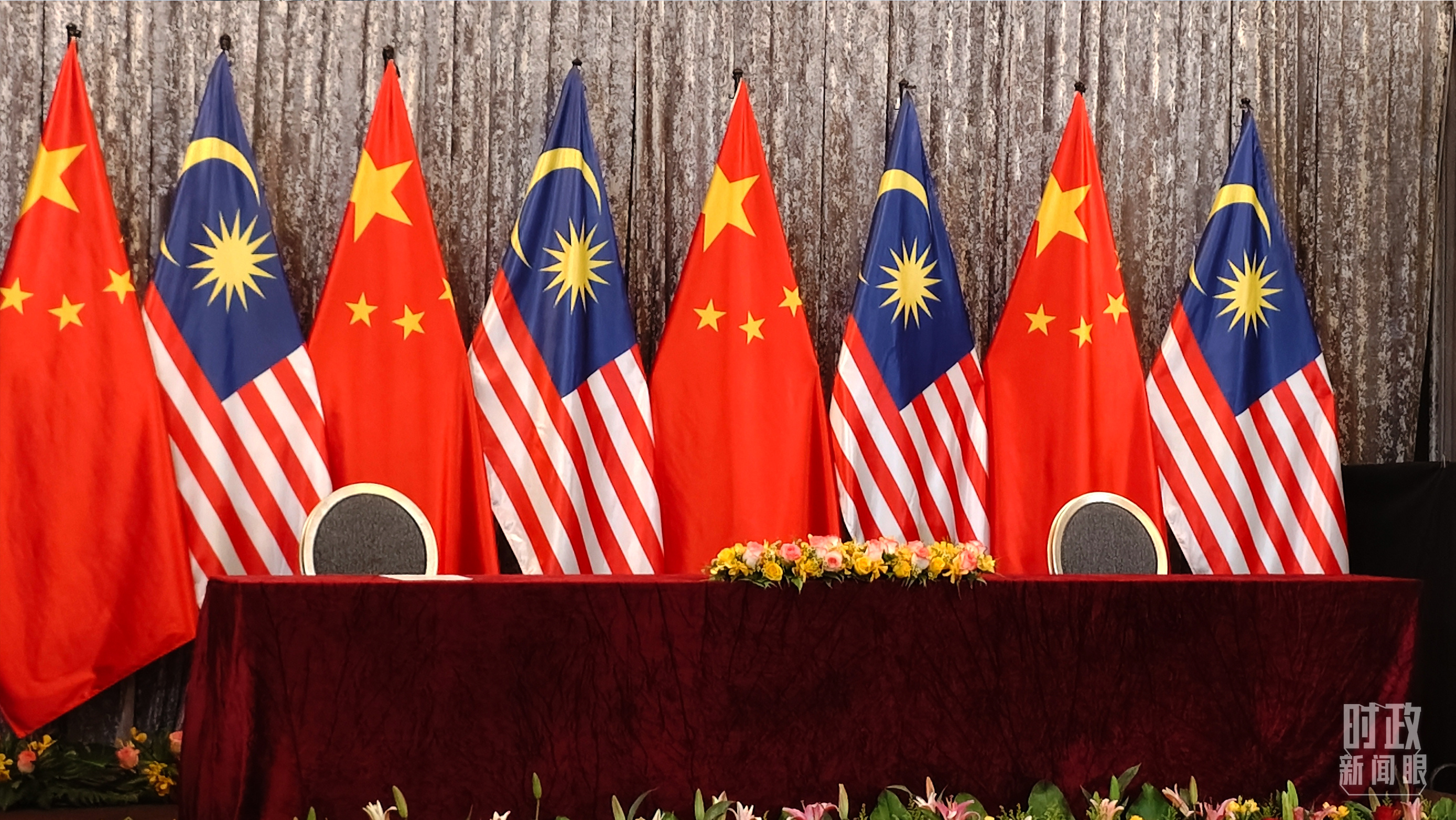 △習(xí)主席和馬來(lái)西亞總理安瓦爾在這里共同見(jiàn)證中馬雙方交換30多份雙邊合作文本,這是開(kāi)始前的現(xiàn)場(chǎng)。(總臺(tái)央視記者韓銳拍攝)