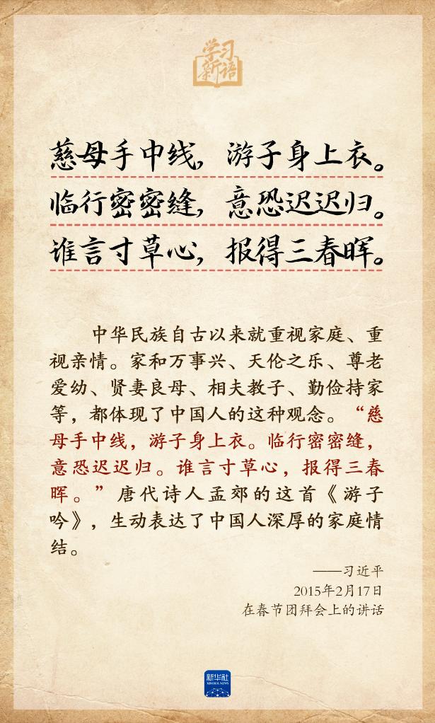 家風(fēng)是社會風(fēng)氣的重要組成部分。習(xí)近平總書記始終重視家庭、家教、家風(fēng)建設(shè),多次在重要場合引經(jīng)據(jù)典話家風(fēng)。5月15日是國際家庭日,我們選取總書記相關(guān)重要論述,品讀其中深意。