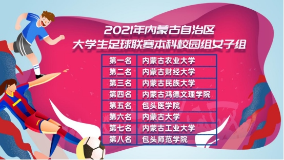 近年來(lái),內(nèi)蒙古校園足球蓬勃發(fā)展,多彩的校園足球賽事與活動(dòng)呈現(xiàn)出不斷發(fā)展的生機(jī)與活力。作為全區(qū)舉辦規(guī)模最大、參賽人數(shù)最多、覆蓋面最廣、專為大學(xué)生量身打造的校園足球賽事,大學(xué)生足球聯(lián)賽成為我區(qū)各高校學(xué)子充分展示青春活力與頑強(qiáng)斗志的重要舞臺(tái)。2021年聯(lián)賽中,共設(shè)高職校園、高職超級(jí)、本科校園和本科超級(jí)組(男、女)共7個(gè)組別。錫林郭勒職業(yè)學(xué)院、包頭輕工職業(yè)技術(shù)學(xué)院、呼和浩特民族學(xué)院分別獲得高職校園男子組、女子組、超級(jí)男子組冠軍;內(nèi)蒙古農(nóng)業(yè)大學(xué)奪得本科校園男子、女子組冠軍;內(nèi)蒙古科技大學(xué)、內(nèi)蒙古大學(xué)分別奪得本科超級(jí)組男子、女子組冠軍。