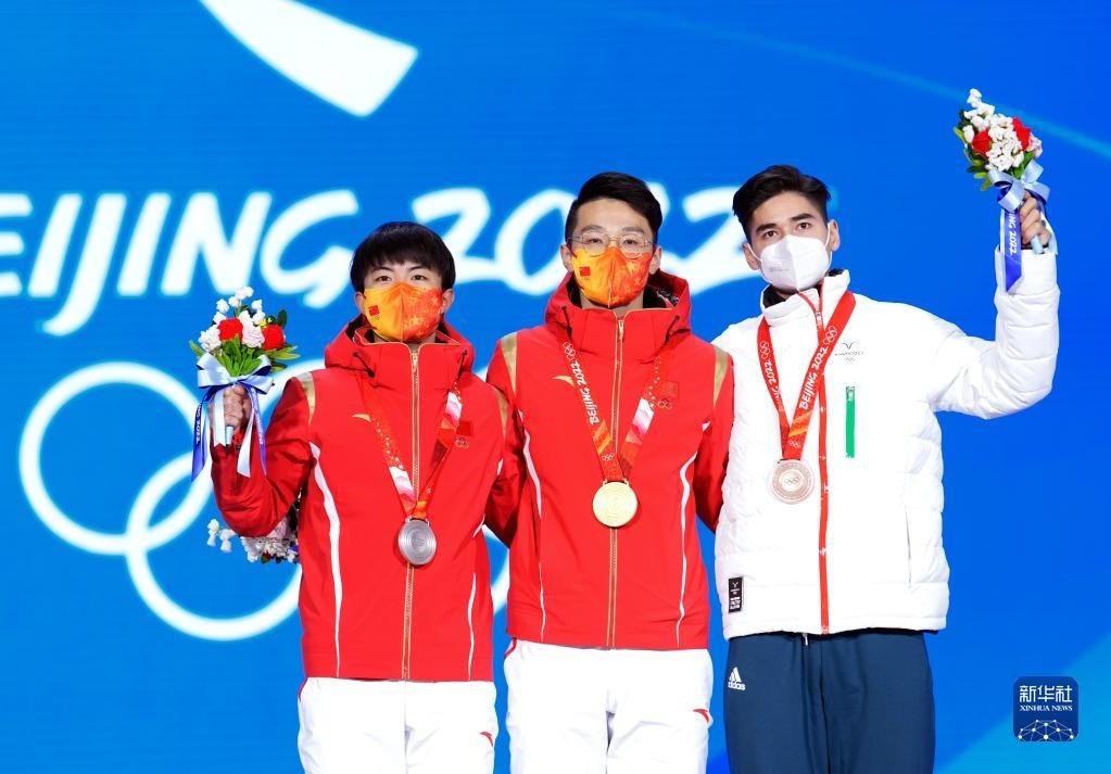 當(dāng)日,北京2022年冬奧會短道速滑男子1000米獎(jiǎng)牌頒發(fā)儀式在北京賽區(qū)頒獎(jiǎng)廣場舉行。