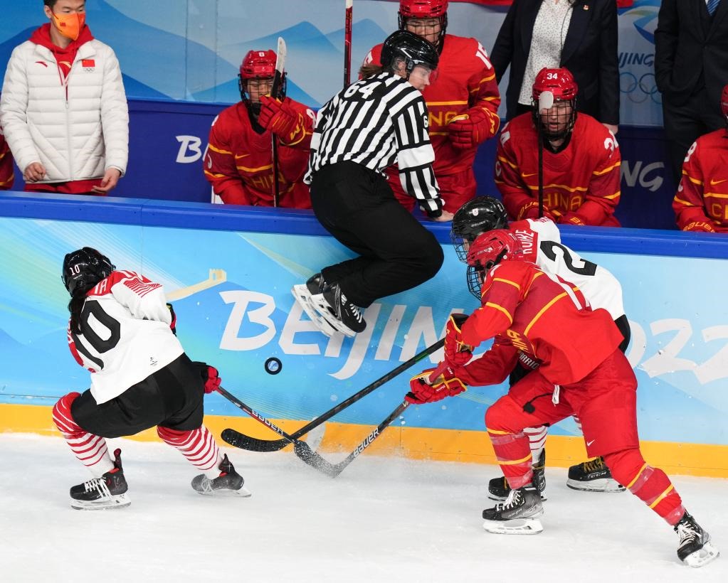 2月6日,中國隊球員張喜芳(右)在比賽中。新華社記者 孟永民 攝