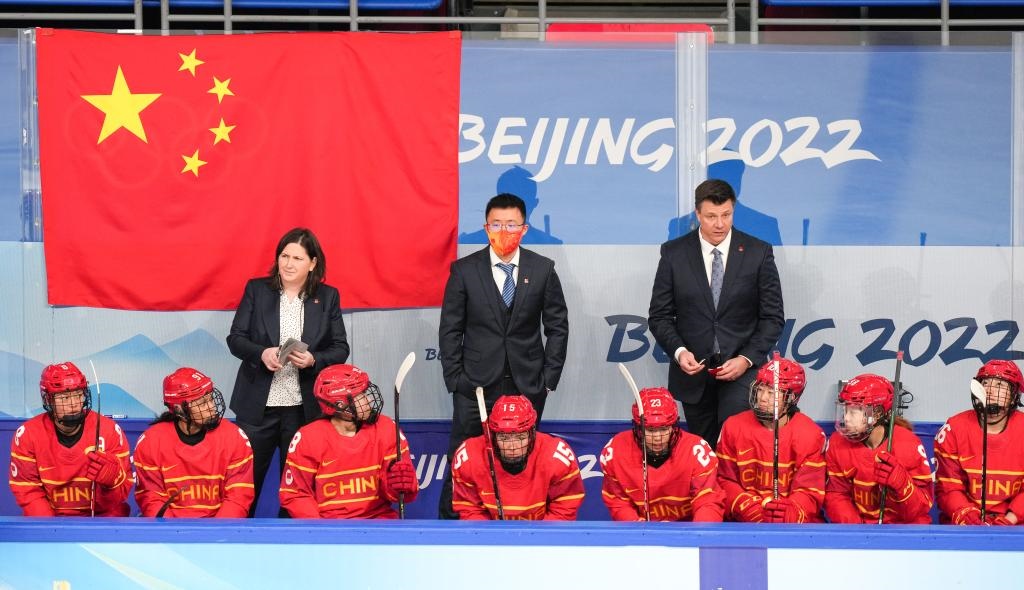 2月6日,中國隊球員在場邊觀戰(zhàn)。新華社記者 孟永民 攝