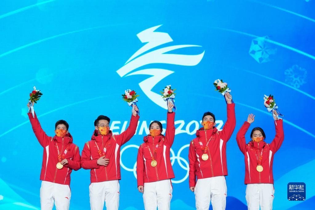 2月6日,北京2022年冬奧會短道速滑混合團體接力獎牌頒發(fā)儀式在北京賽區(qū)頒獎廣場舉行。