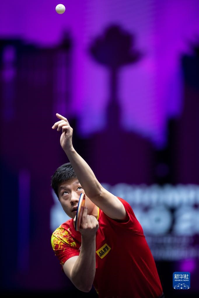 10月19日,馬龍在比賽中回球。新華社記者 張金加 攝