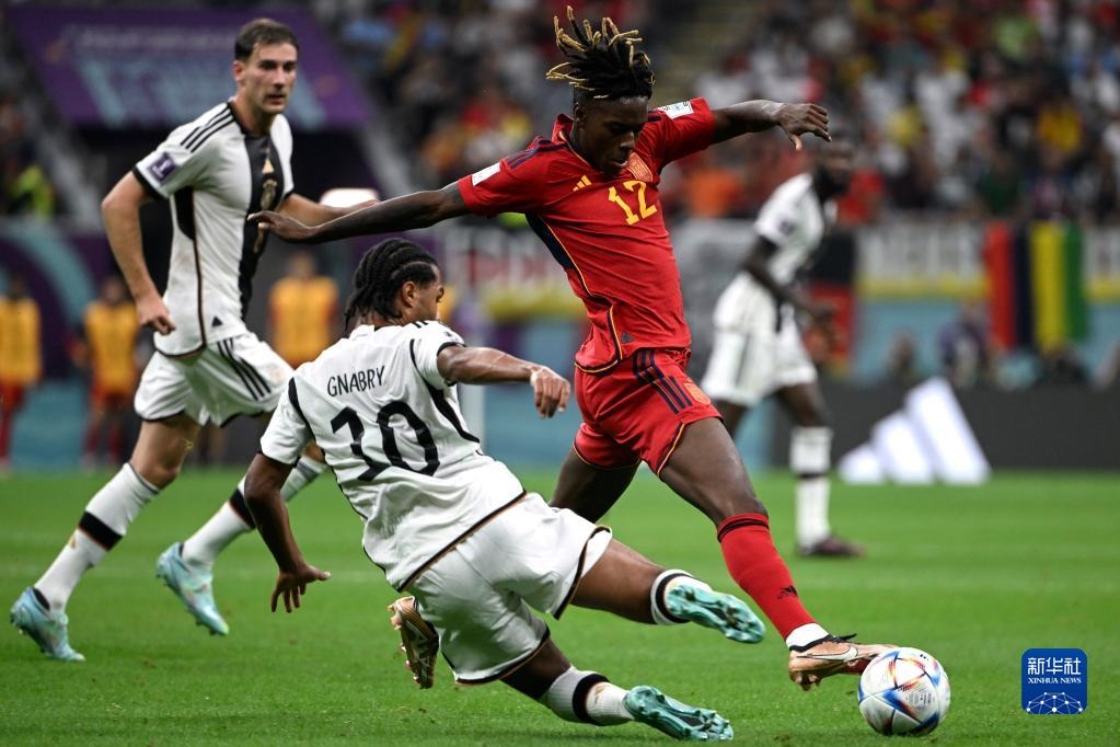 當日,在卡塔爾豪爾海灣球場進行的2022卡塔爾世界杯足球賽E組比賽中,西班牙隊以1比1戰(zhàn)平德國隊。