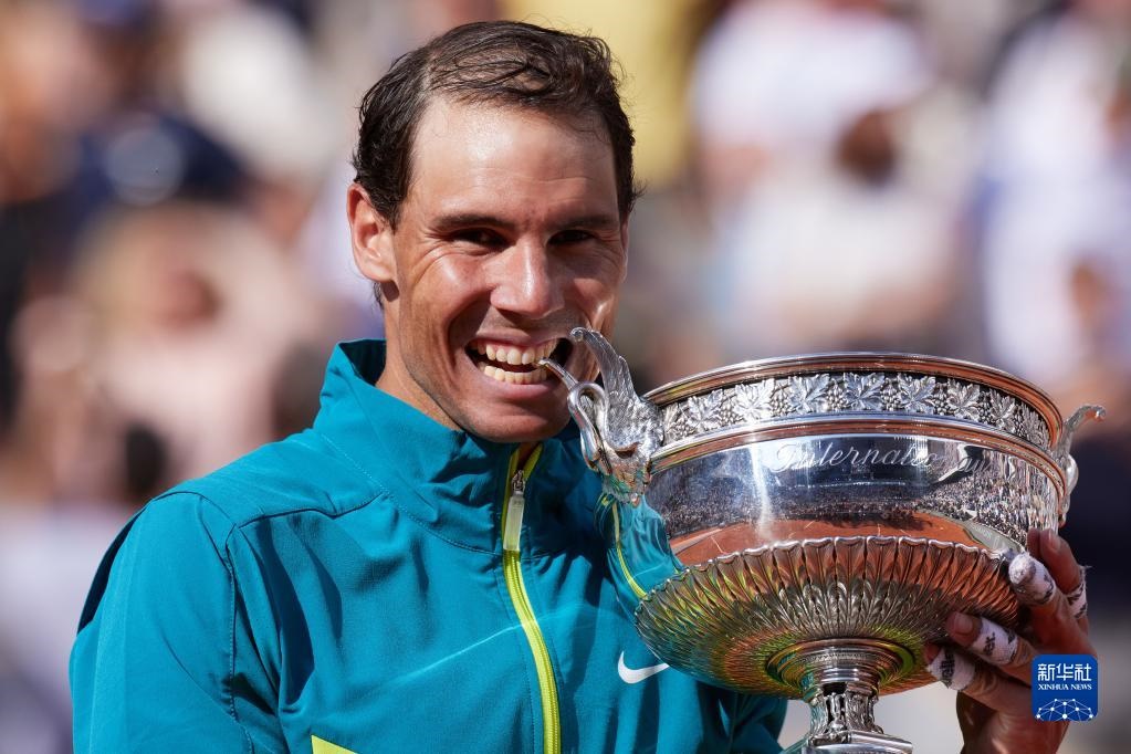 6月5日,西班牙選手納達(dá)爾擊敗挪威選手魯?shù)?,?4次獲得法國(guó)網(wǎng)球公開(kāi)賽男單冠軍。納達(dá)爾也成為公開(kāi)賽時(shí)代第一位獲得22個(gè)大滿貫?zāi)袉喂谲姷倪x手。