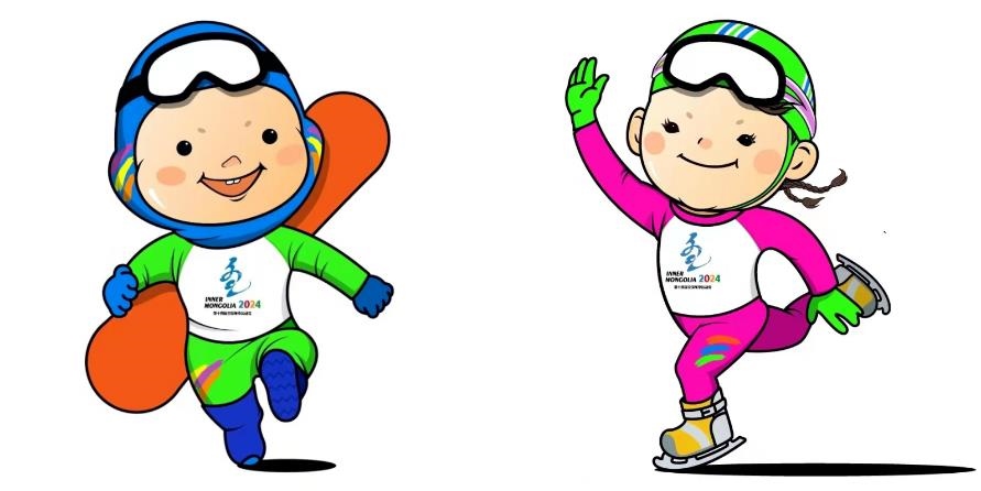 “十四冬吉祥物:安達(左) 賽努(右)