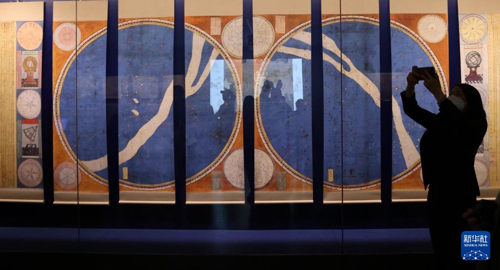 ??1月13日,“明清檔案”專題展出的明崇禎七年(1634)由大學(xué)士徐光啟和西洋傳教士湯若望共同參與繪制的《赤道南北兩總星圖》(仿制品)。
