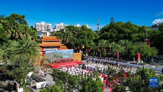 這是7月8日拍攝的五指山“上山爽一夏 故園·畢業(yè)季”暨州府故園文化節(jié)啟動(dòng)儀式現(xiàn)場(chǎng)。