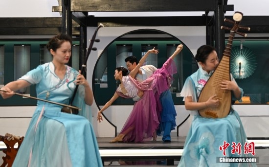 9月1日,表演者演繹中國傳統(tǒng)器樂和舞蹈。當(dāng)日,杭州亞運(yùn)會主媒體中心舉行媒體開放日活動,現(xiàn)場亮相的科技與傳統(tǒng)文化項(xiàng)目引人體驗(yàn)。中新社記者 王剛 攝