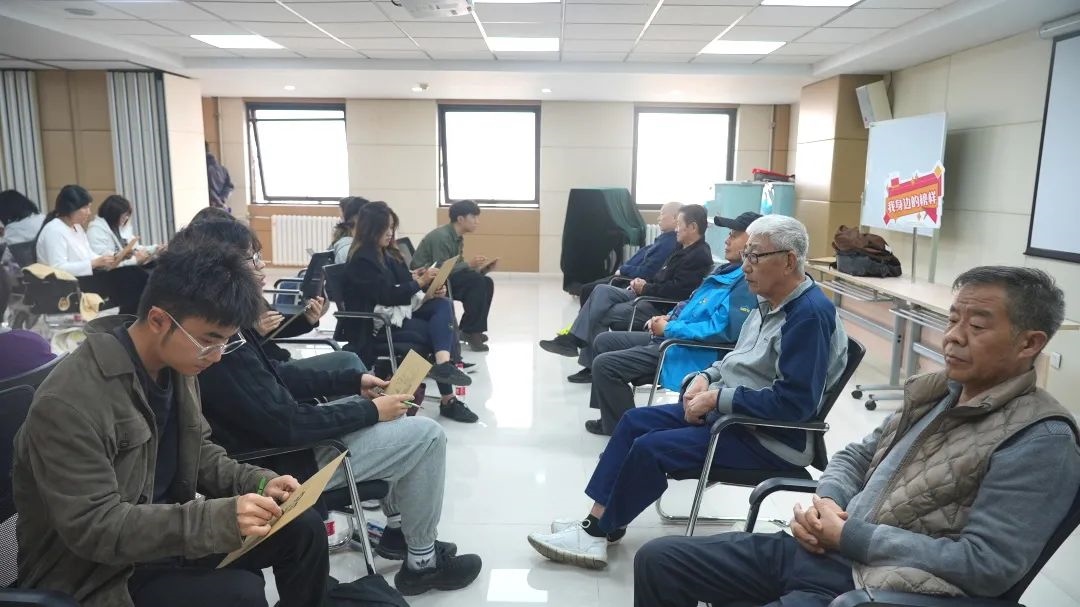 在街道黨群服務(wù)中心小課堂上,中央美院的同學(xué)認真聆聽社區(qū)老黨員姜德堂同志講述紅色革命故事,傳承革命精神。同學(xué)們還開展了“送學(xué)上門”服務(wù),為地區(qū)老年人、企業(yè)單位送上“精神大餐”。