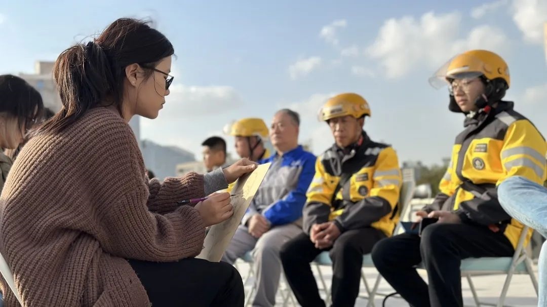 畫像小組的同學(xué)拿起手中畫筆,為團結(jié)湖南北里社區(qū)老黨員、社區(qū)志愿者、騎手社工畫像。大家認真描繪“模特”們和藹可親的形象,不時與“模特”聊天互動,聽他們分享自己生活中的精彩故事。除此之外,部分同學(xué)圍繞垃圾分類、廉政教育等主題為社區(qū)繪制黨建板報。通過繪制板報,傳播正能量,為社區(qū)宣傳添一份力。
