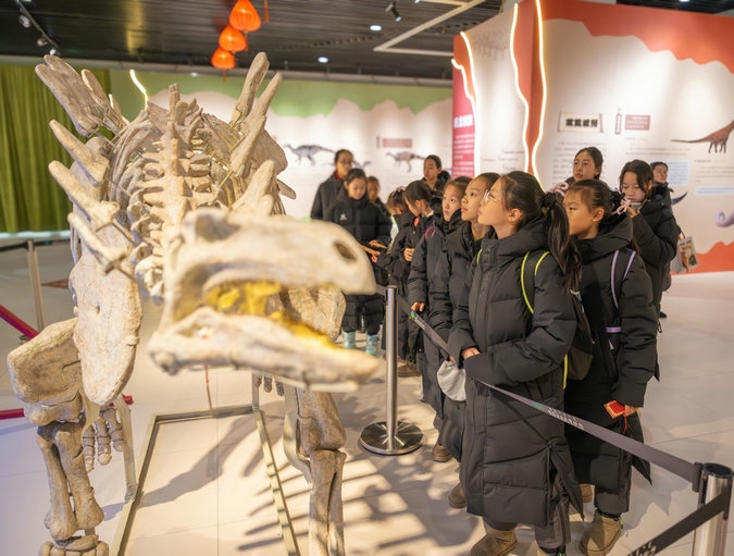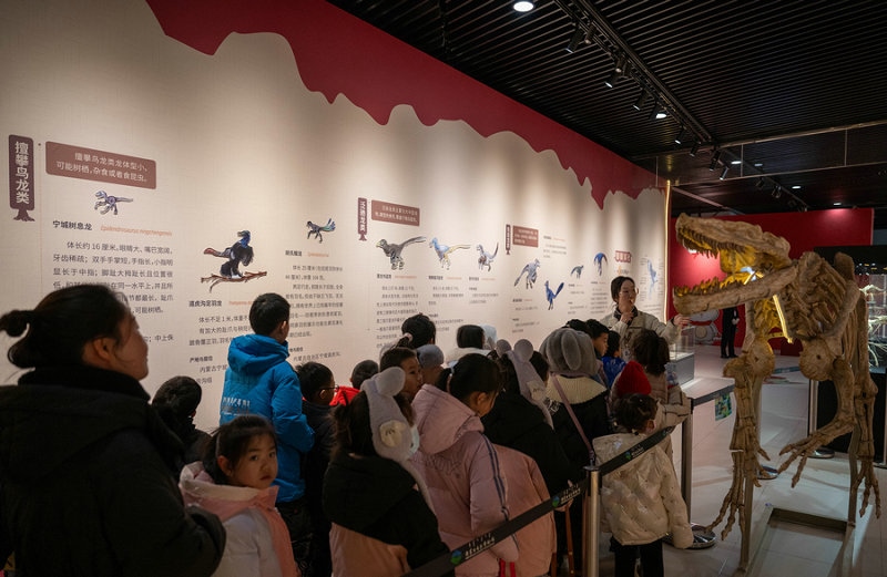 據(jù)介紹,此次展覽包括“巨龍家族”“披堅執(zhí)銳”“‘干飯’能手”和“稱霸之路”四個部分,集中展示了內(nèi)蒙古地區(qū)發(fā)現(xiàn)的各類恐龍共52種。