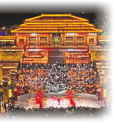 山東臨沂郯城縣郯國(guó)古城景區(qū),游客在觀看表演。張春雷攝(人民視覺(jué))