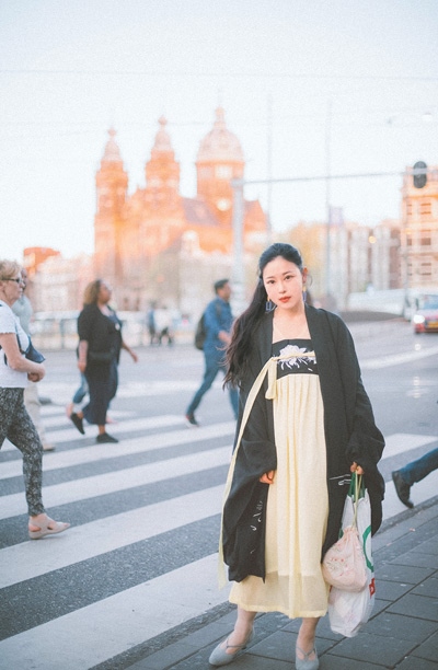 “換成漢服之后,確實(shí)感覺到對觀眾的吸引力更強(qiáng)了。從現(xiàn)場演出看,在異國街頭,漢服與古箏的搭配跟周邊環(huán)境形成強(qiáng)烈的反差,可以吸引更多人走近中國傳統(tǒng)服飾、中國傳統(tǒng)音樂。在網(wǎng)絡(luò)平臺(tái)上,以音樂為載體、以服飾為外觀特點(diǎn)的演奏,能夠讓刷視頻的網(wǎng)友快速從視覺、聽覺上得到美的享受?!迸盱o旋說。