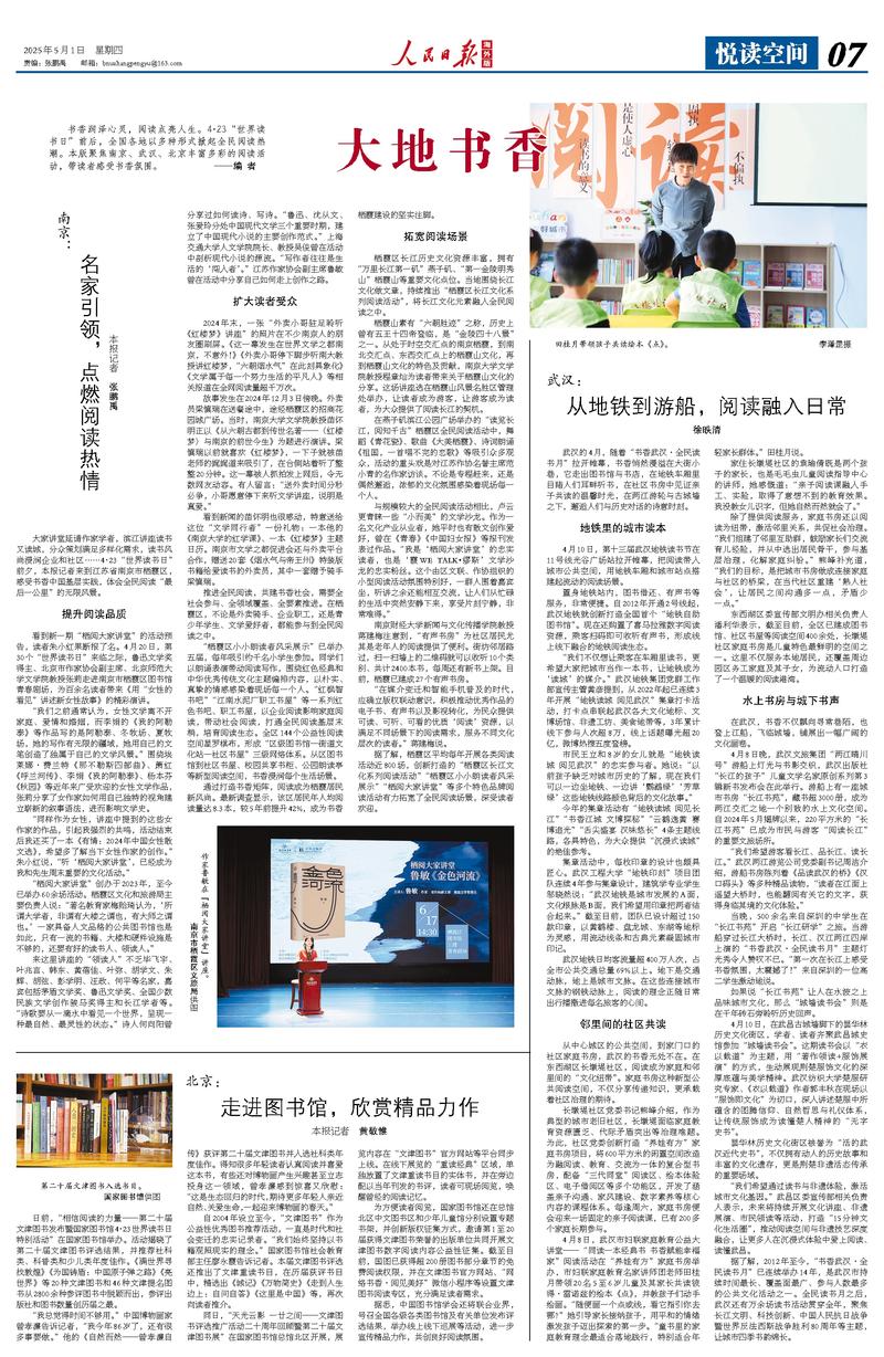 書香潤澤心靈,閱讀點亮人生。4·23“世界讀書日”前后,全國各地以多種形式掀起全民閱讀熱潮。本版聚焦南京、武漢、北京豐富多彩的閱讀活動,帶讀者感受書香氛圍。