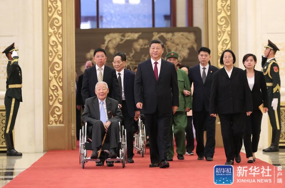 ↑9月29日,中華人民共和國國家勛章和國家榮譽稱號頒授儀式在北京人民大會堂金色大廳隆重舉行。中共中央總書記、國家主席、中央軍委主席習(xí)近平同國家勛章和國家榮譽稱號獲得者一同步入會場。新華社記者丁海濤攝