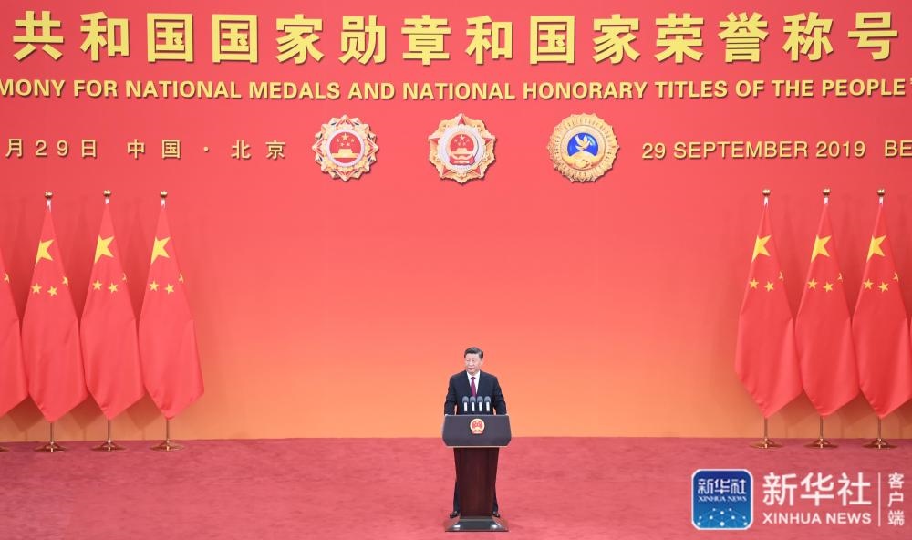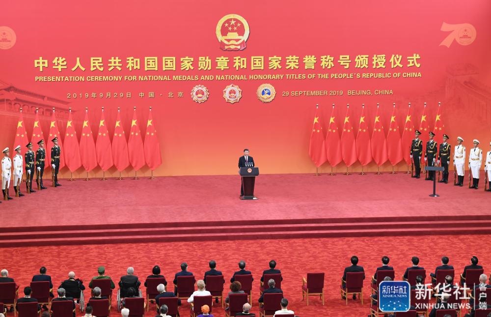 習(xí)近平向國家勛章和國家榮譽稱號獲得者頒授勛章獎?wù)虏l(fā)表重要講話