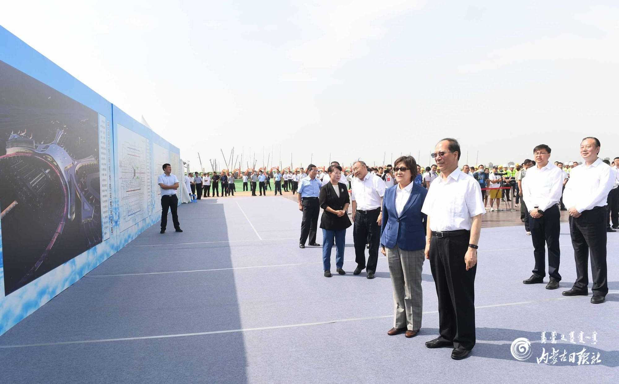 7月30日上午,自治區(qū)黨委書記、人大常委會(huì)主任石泰峰,自治區(qū)黨委副書記、自治區(qū)主席布小林出席呼和浩特新機(jī)場(chǎng)建設(shè)動(dòng)員會(huì)前,觀看新機(jī)場(chǎng)規(guī)劃圖版了解項(xiàng)目整體情況。內(nèi)蒙古日?qǐng)?bào)社融媒體記者 袁永紅 攝
