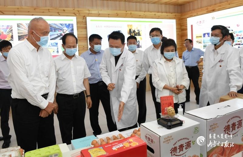 8月24日,北京市黨政代表團(tuán)來(lái)到內(nèi)蒙古赤峰市考察調(diào)研。圖為北京市黨政代表團(tuán)在赤峰市林西縣德清源金雞產(chǎn)業(yè)扶貧項(xiàng)目區(qū),了解產(chǎn)業(yè)帶貧減貧和產(chǎn)品加工、銷(xiāo)售情況。內(nèi)蒙古日?qǐng)?bào)社記者 袁永紅 攝