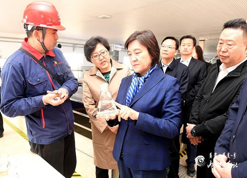 布小林十分關(guān)心沿黃地區(qū)的水資源節(jié)約集約高效利用和生態(tài)保護(hù)建設(shè)。她來到烏海市綠色生態(tài)農(nóng)業(yè)產(chǎn)業(yè)園,走進(jìn)綠農(nóng)永勝農(nóng)民專業(yè)合作社陽光大棚葡萄基地,詳細(xì)了解葡萄種植需水和高效節(jié)水設(shè)施的使用情況;在烏海市啟源供水有限公司,實(shí)地查看凈水工藝流程及針對黃河水特點(diǎn)采取的處理措施。布小林指出,我區(qū)沿黃地區(qū)大多水資源匱乏,生態(tài)保護(hù)和經(jīng)濟(jì)社會發(fā)展面臨水資源短缺的剛性約束。抓好水資源節(jié)約集約高效利用,是推進(jìn)黃河流域生態(tài)保護(hù)和高質(zhì)量發(fā)展的重中之重。要牢固樹立節(jié)水意識,堅持以水定城、以水定地、以水定人、以水定產(chǎn),合理規(guī)劃人口、城市和產(chǎn)業(yè)發(fā)展,大力發(fā)展節(jié)水產(chǎn)業(yè)和技術(shù),實(shí)施全社會節(jié)水行動,推動用水方式由粗放向節(jié)約集約轉(zhuǎn)變。要大力發(fā)展循環(huán)經(jīng)濟(jì),結(jié)合技術(shù)改造和產(chǎn)品更新?lián)Q代,組織實(shí)施重大節(jié)水和水循環(huán)利用示范工程,提高水資源重復(fù)利用率。