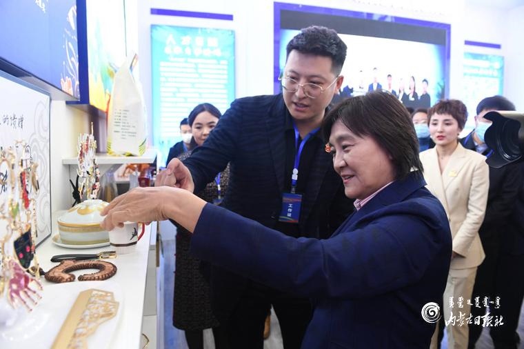 10月15日,自治區(qū)黨委副書記、自治區(qū)主席布小林參觀自治區(qū)“雙創(chuàng)”成果展。內蒙古日報記者 韓卿立攝