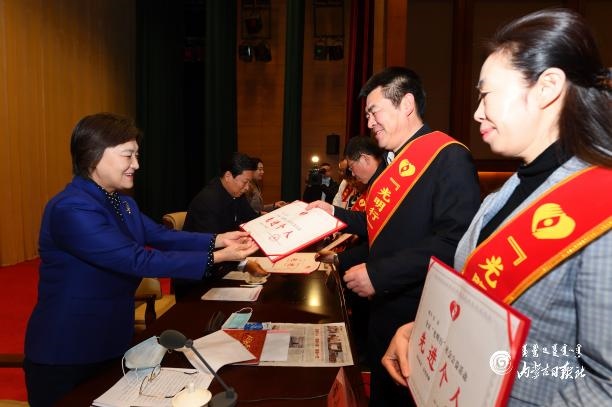 12月14日,全區(qū)“光明行”社會公益活動總結(jié)表彰會在呼和浩特舉行。自治區(qū)主席、紅十字會名譽(yù)會長、全區(qū)“光明行”社會公益活動組委會主任委員布小林為受表彰代表頒發(fā)榮譽(yù)證書。內(nèi)蒙古日報記者 金泉 攝