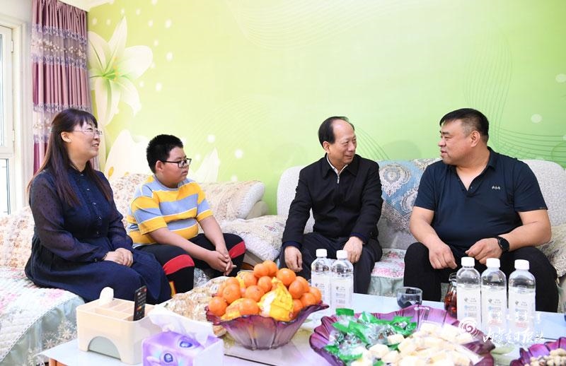 在海拉爾區(qū)神寶小區(qū),石泰峰與自治區(qū)勞模于景斌拉起家常,詳細(xì)了解他十幾年如一日堅(jiān)守生產(chǎn)一線學(xué)技術(shù)、練本領(lǐng)、搞創(chuàng)新的先進(jìn)事跡。石泰峰說,實(shí)踐出真知,只要肯鉆研、行行出狀元,新一代的工人和廣大勞動(dòng)者要向勞模學(xué)習(xí),弘揚(yáng)勞模精神,充分發(fā)揮有知識、懂技術(shù)、善創(chuàng)新的優(yōu)勢,不斷在工作崗位上創(chuàng)造新的業(yè)績、作出更大貢獻(xiàn)。在天驕家園小區(qū),石泰峰與老黨員祁寶良相談甚歡,他一邊翻看老照片和回憶錄,一邊與老人共同回顧崢嶸歲月。石泰峰說,老黨員老同志的革命經(jīng)歷是我們黨寶貴的精神財(cái)富,我們要多給年輕人講一講,讓他們銘記光榮革命歷史,珍惜今天幸福生活,更加奮發(fā)有為地建功新時(shí)代。石泰峰叮囑老人保重身體,祝福老人健康長壽。