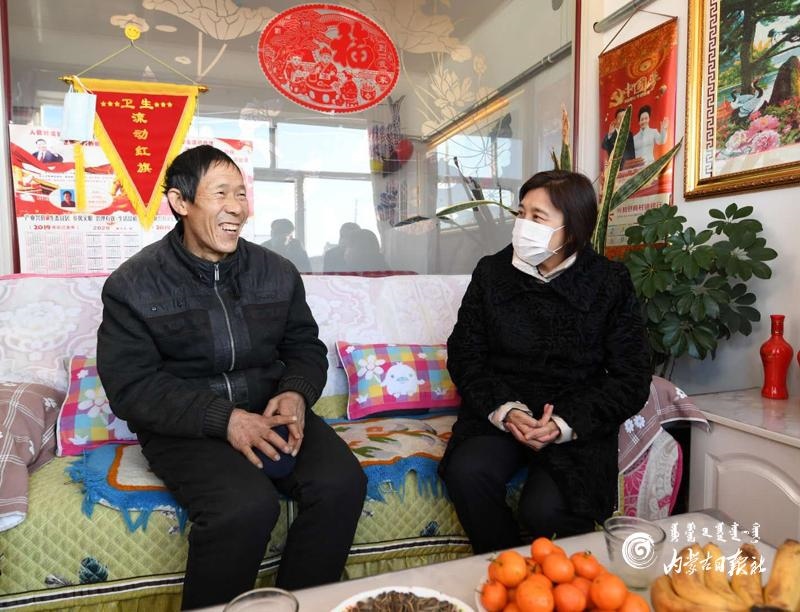 1月5日,自治區(qū)黨委副書記、自治區(qū)主席布小林在烏蘭察布市興和縣城關(guān)鎮(zhèn)下崗就業(yè)困難人員楊玉英家里,布小林與她促膝交談,詳細了解目前生活情況。內(nèi)蒙古日報記者 韓卿立 攝