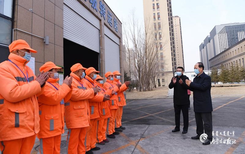 2月11日,自治區(qū)黨委書(shū)記、人大常委會(huì)主任石泰峰慰問(wèn)呼和浩特市賽罕區(qū)環(huán)衛(wèi)局萬(wàn)正生活垃圾轉(zhuǎn)運(yùn)站一線(xiàn)環(huán)衛(wèi)工人,向他們致以新春的祝福。