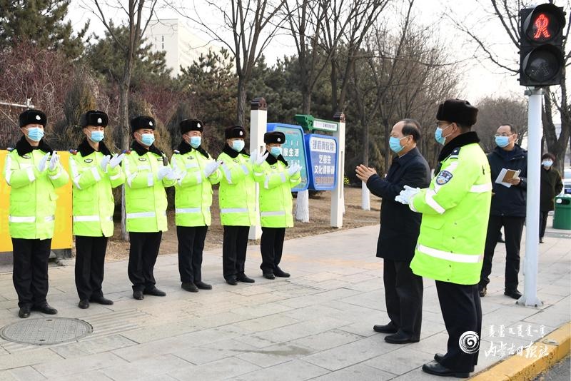 2月11日,自治區(qū)黨委書(shū)記、人大常委會(huì)主任石泰峰慰問(wèn)春節(jié)期間堅(jiān)守崗位的執(zhí)勤交警,向他們致以新春的祝福。 內(nèi)蒙古日?qǐng)?bào)社融媒體記者 袁永紅 攝