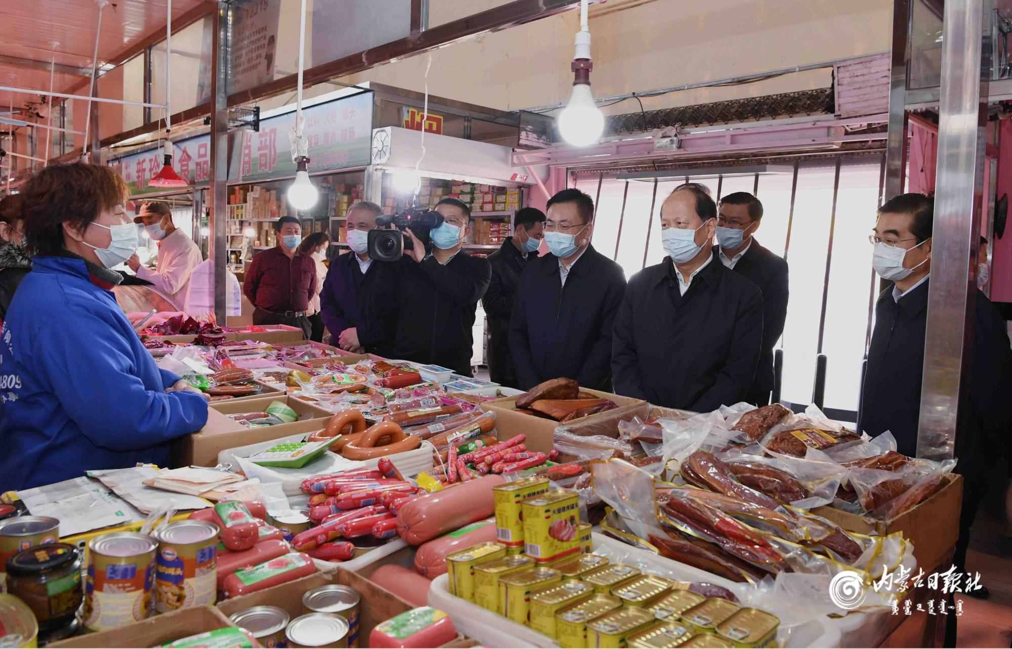 10月26日,自治區(qū)黨委書記、人大常委會主任石泰峰來到東瓦窯農(nóng)副產(chǎn)品批發(fā)市場,與購物市民一起接受體溫檢測。在水產(chǎn)海鮮和肉食大廳,他認(rèn)真察看防控措施落實(shí)情況。內(nèi)蒙古日報(bào)社融媒體記者 袁永紅 攝