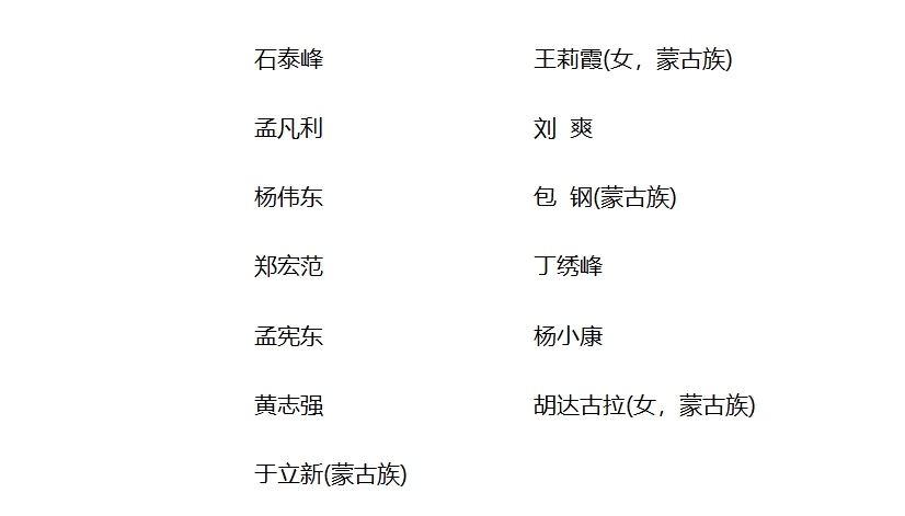 中國共產(chǎn)黨內(nèi)蒙古自治區(qū)第十一屆委員會(huì)常務(wù)委員會(huì)委員名單(13人)