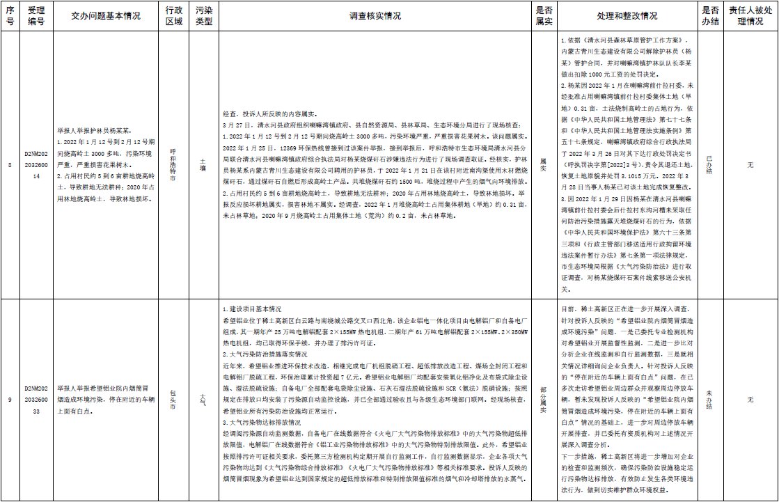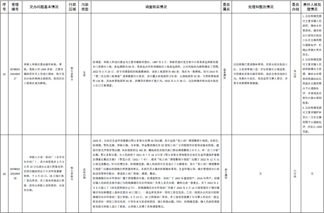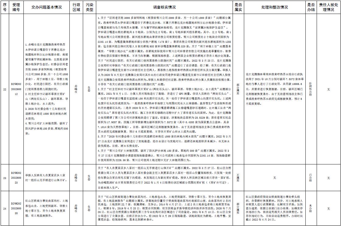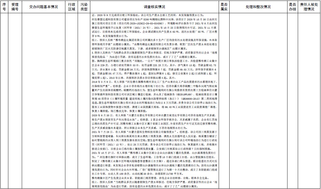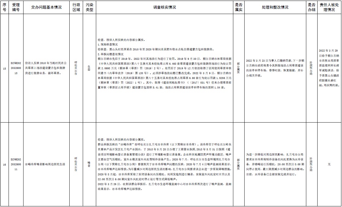 原標題:中央第三生態(tài)環(huán)境保護督察組交辦內蒙古自治區(qū)第二批42件群眾信訪舉報件辦理情況