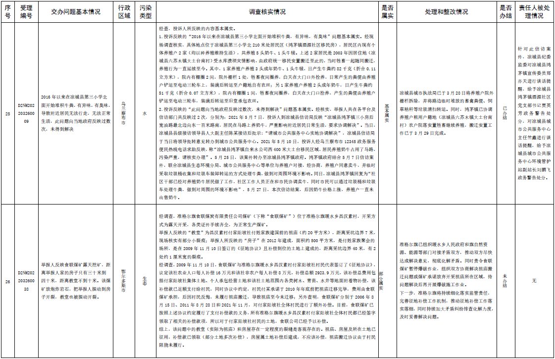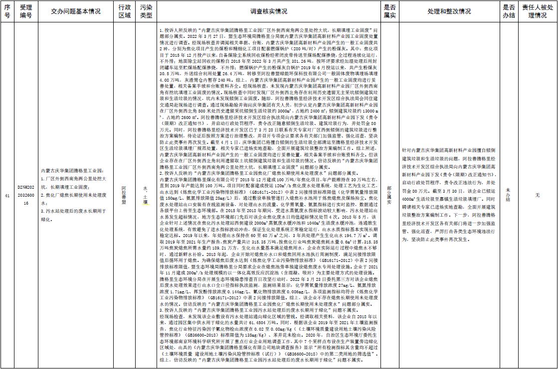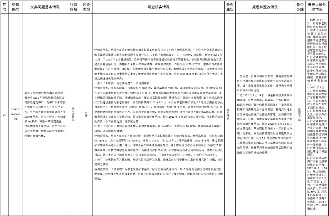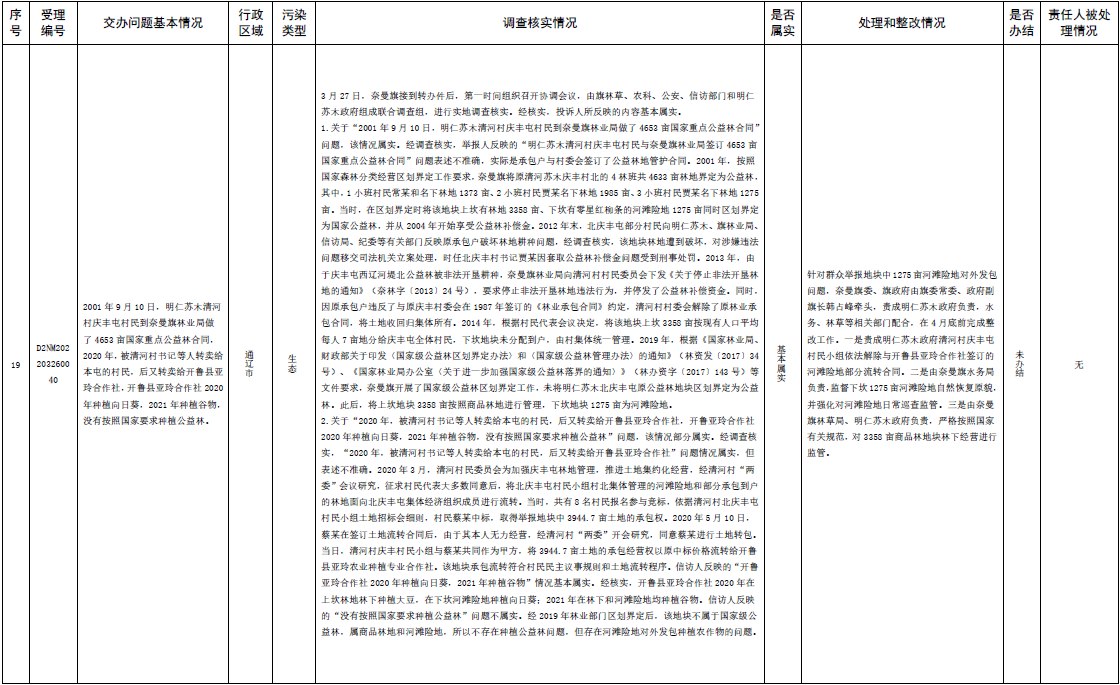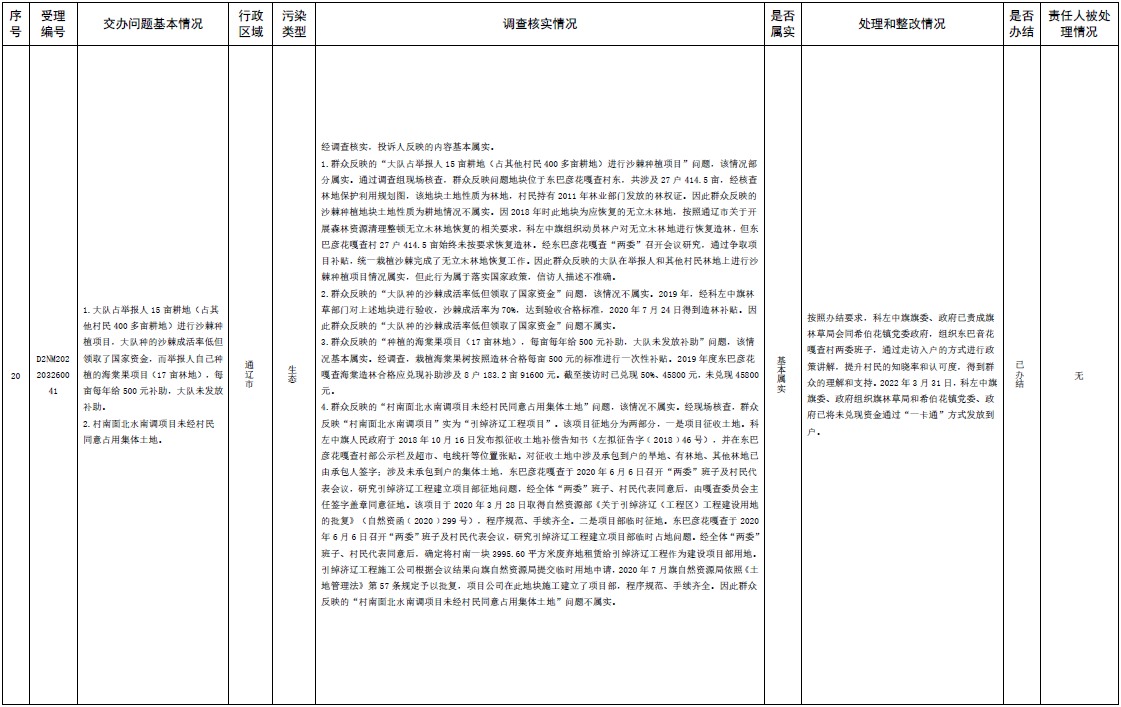 原標題:中央第三生態(tài)環(huán)境保護督察組交辦內蒙古自治區(qū)第二批42件群眾信訪舉報件辦理情況