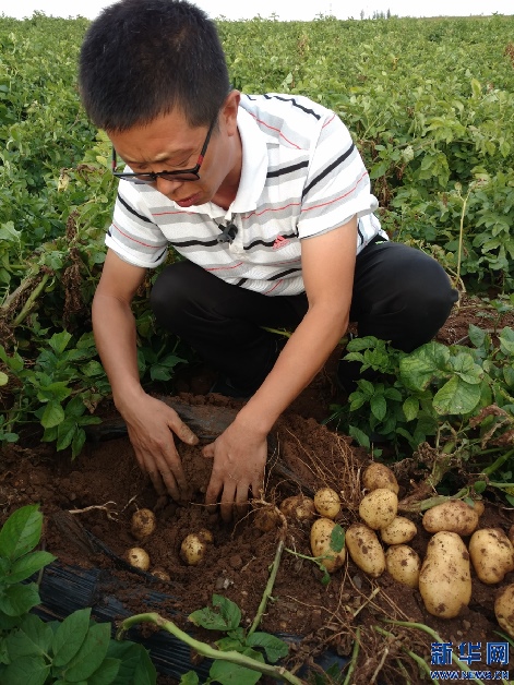 李亞平在查看馬鈴薯的生長(zhǎng)情況。新華網(wǎng)發(fā) (受訪(fǎng)者供圖)