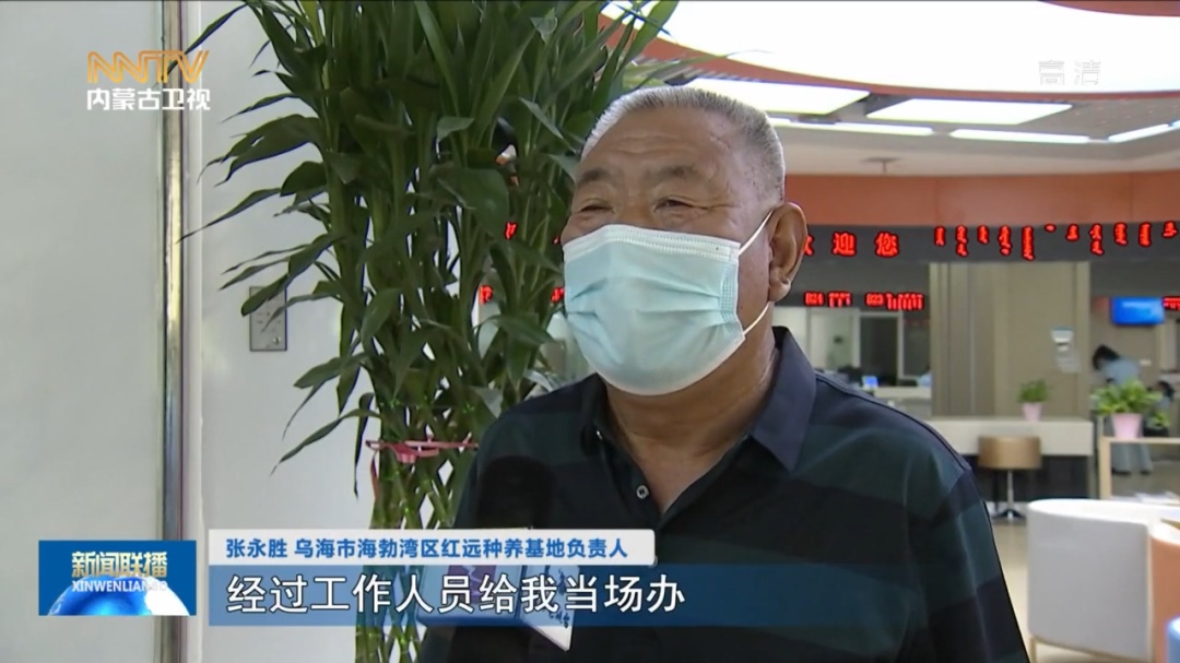 張永勝 烏海市海勃灣區(qū)紅遠種養(yǎng)基地負責人  我原來想的辦這個東西挺費勁,經(jīng)過工作人員給我當場辦,比我想象的還要快,我非常高興。