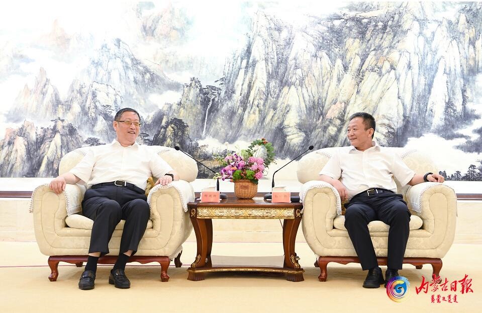 7月5日,自治區(qū)黨委書記孫紹騁在呼和浩特拜會全國政協(xié)副主席、民革中央常務副主席鄭建邦。