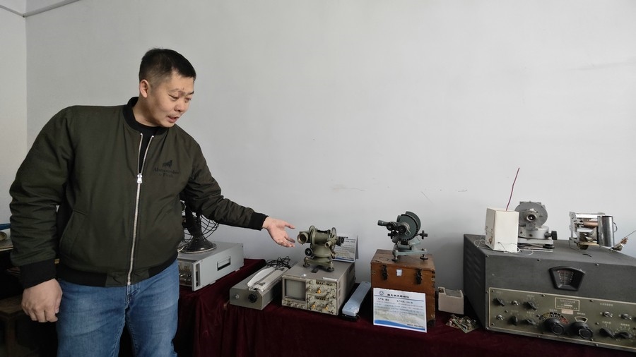 樊斌副局長(zhǎng)介紹曾經(jīng)的氣象觀測(cè)設(shè)備 記者 張楊攝影