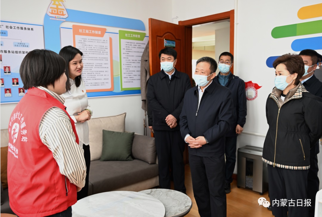 4月21日,孫紹騁在鄂爾多斯市東勝區(qū)天驕街道安達社區(qū)了解基層社會工作開展情況。內蒙古日報社融媒體記者馬建荃攝