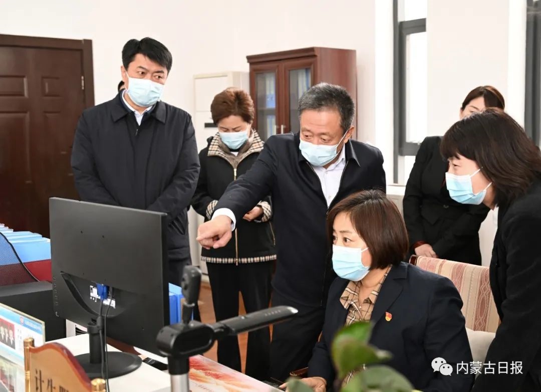 4月21日,孫紹騁在鄂爾多斯市東勝區(qū)天驕街道鐵西社區(qū)了解基層需要維護的系統(tǒng)平臺情況。內蒙古日報社融媒體記者馬建荃攝